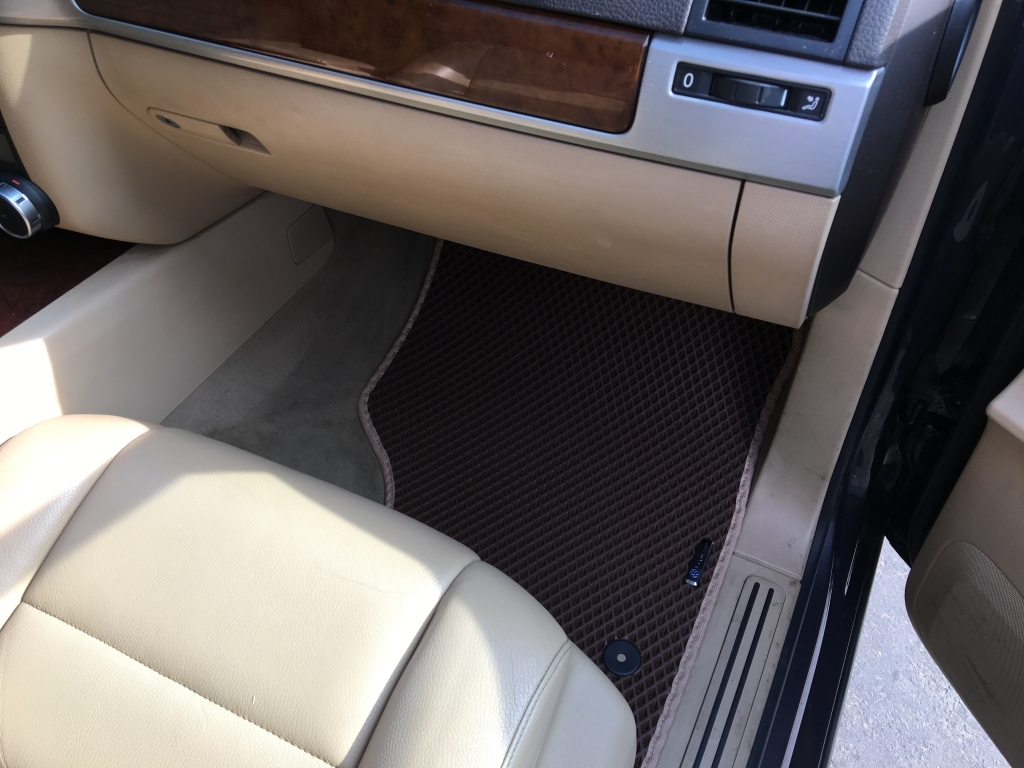 EVA коврики для автомобиля Volkswagen Touareg 2002 - 2010 — это лучший выбор. Покрытие из этого ячеистого полимерного материала покупают сотни автолюбителей. Коврики из ЭВА долговечные, прочные, красивые. Сроки службы изделий — от 5 лет. Они не выделяют вредных веществ, ничем не пахнут. Коврики защищают пол автомобиля от грязи и влаги, а салон — от лишней пыли.