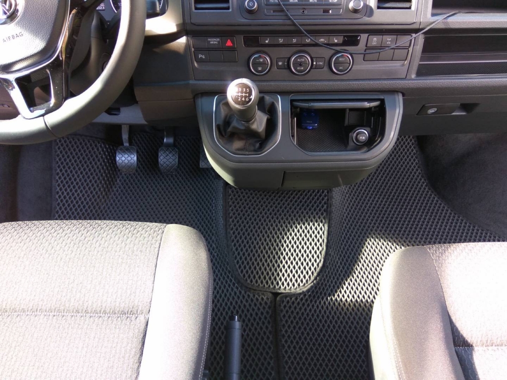 EVA коврики для автомобиля Vw Multivan (Т5/T6) 2015 - наст. время (короткая база) весь салон (1 дверь, без столика, без подстаканников на 2 ряду) — это лучший выбор. Покрытие из этого ячеистого полимерного материала покупают сотни автолюбителей. Коврики из ЭВА долговечные, прочные, красивые. Сроки службы изделий — от 5 лет. Они не выделяют вредных веществ, ничем не пахнут. Коврики защищают пол автомобиля от грязи и влаги, а салон — от лишней пыли.